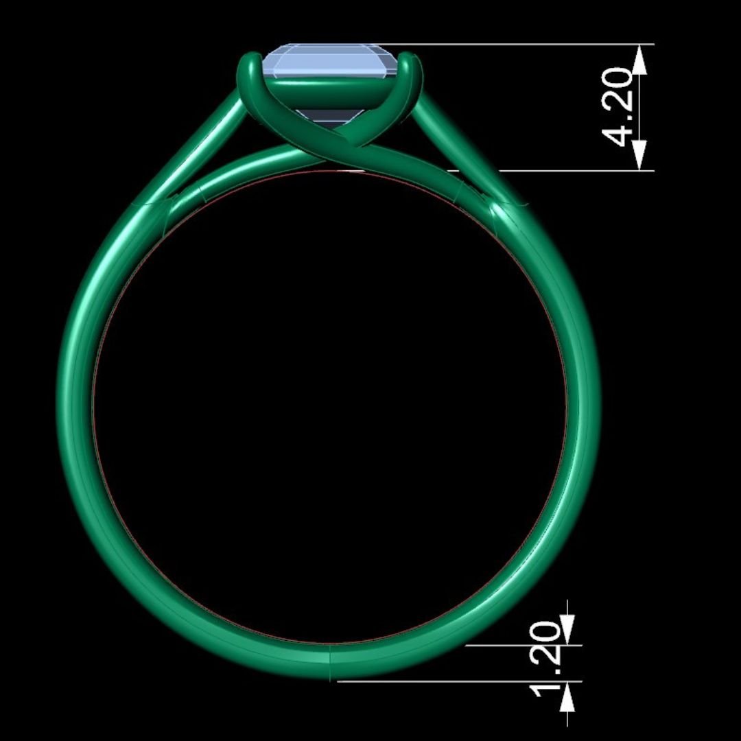 Emerald Cut Engagement Ring 3D CAD Model-O1-105
