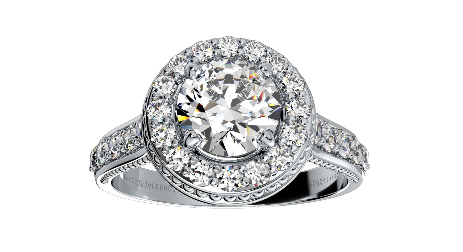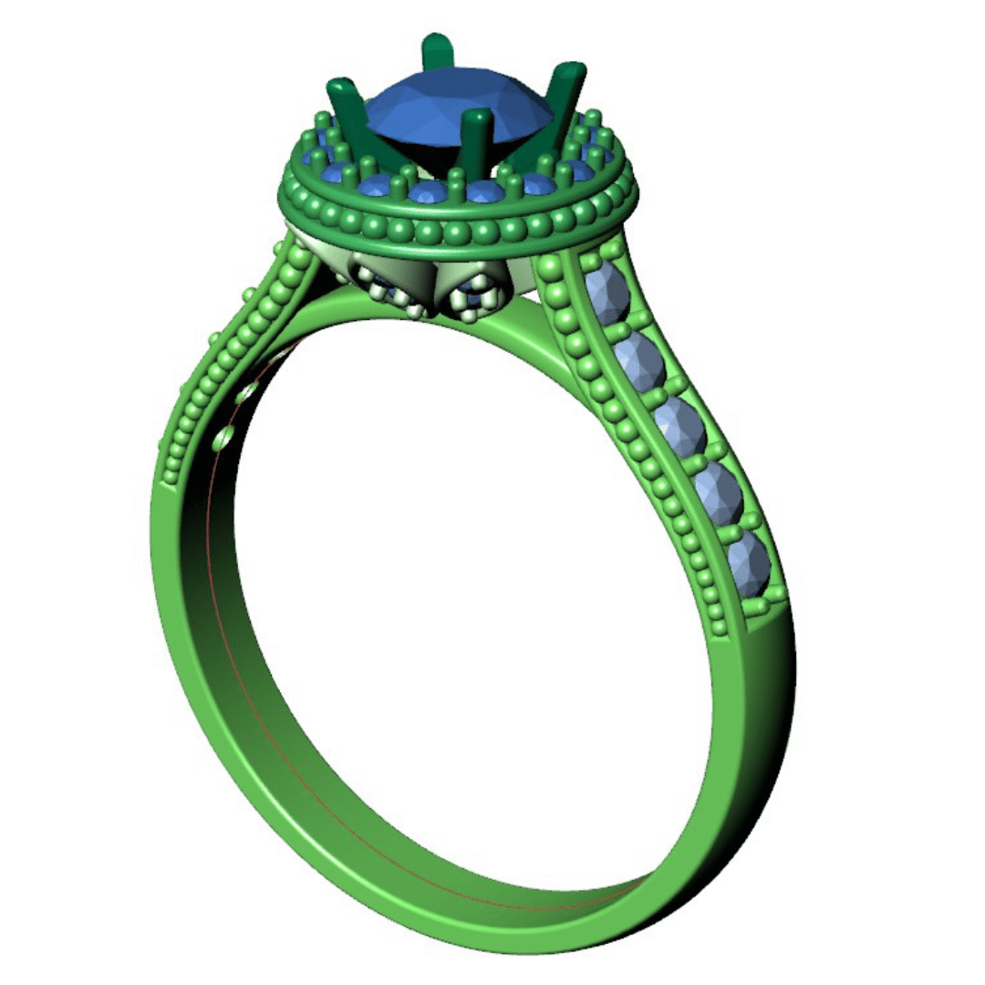 Engagement Ring Halo Diamonds 3D CAD Design-O1168PT3D