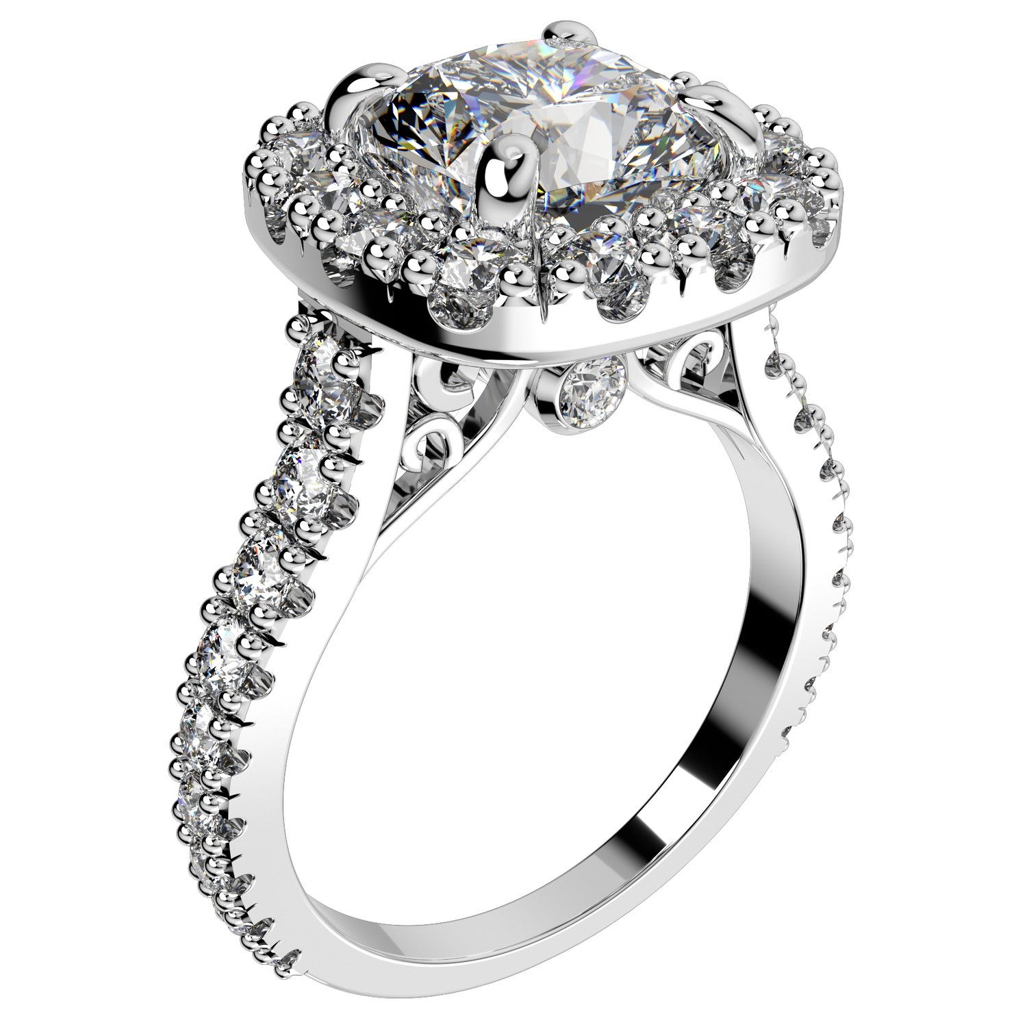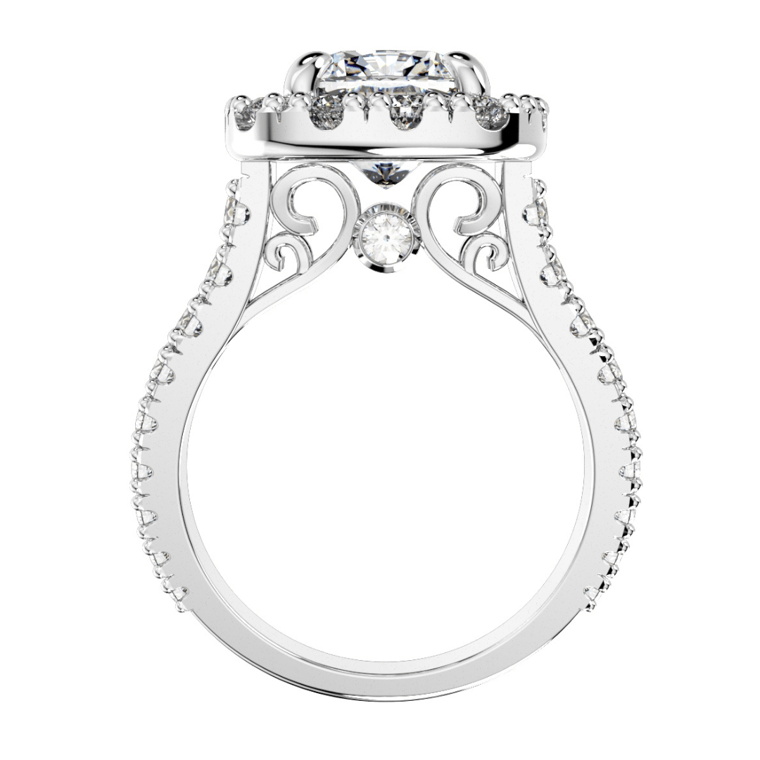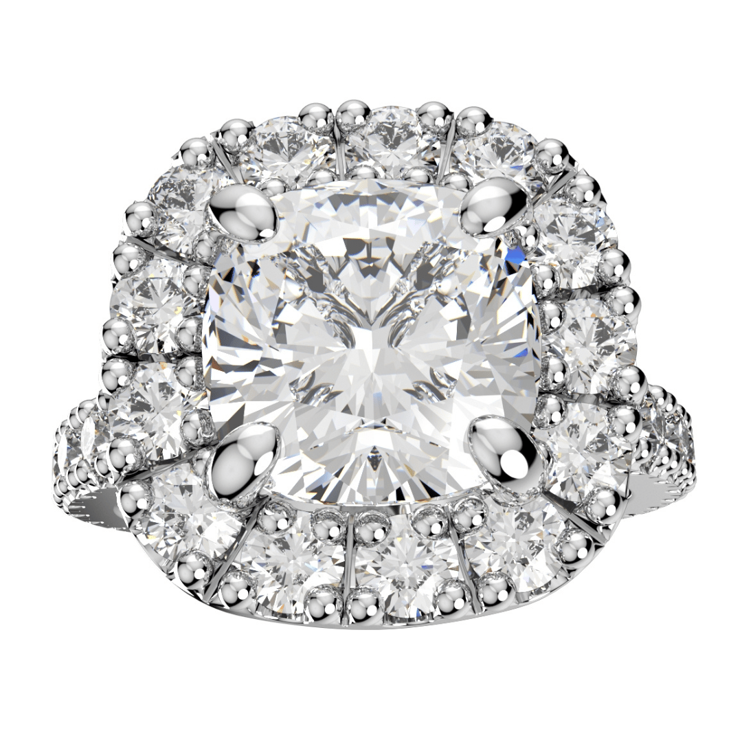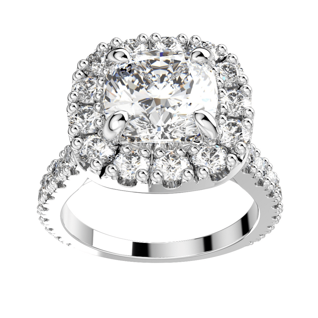 Halo Diamond Cushion Cut Engagement Ring CAD Design-O-1-109